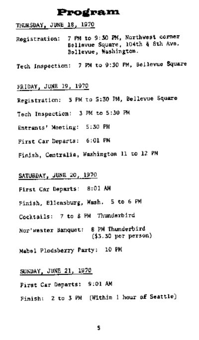Summary: For the first time the rally concentrated on the eastern slopes of the Cascades. Friday overnight in Centralia and Saturday overnight in Ellensburg. This year, with increasing press coverage, Seattle television station KOMO (ABC) filmed parts of the rally for their "Exploration Northwest" program. Nor'wester was also voted "Best Rally of the Year" in the Northwest (the first year for such an award). Observed by the SCCA for national sanction. The prize fund was $900, and entries numbered 48.