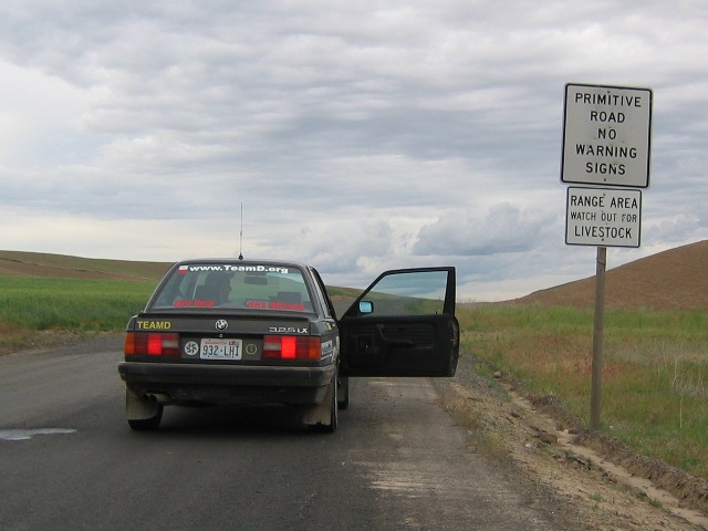 Two weeks before the rally Eric and Steve and Kirk and Joel did a checkout run to verify the route. After discovering that the very first sign was missing we moved on to a smooth run of the 2004 course.